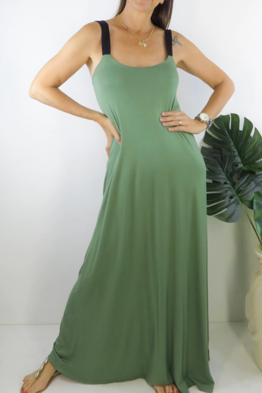 Vestido Indio gris melange confeccionado en crepé de viscosa, ideal para quienes buscan elegancia y comodidad. Su diseño largo con breteles finos y elástico en la espalda garantiza un ajuste perfecto y libertad de movimiento.